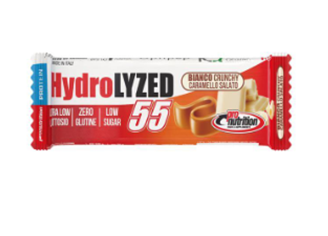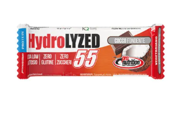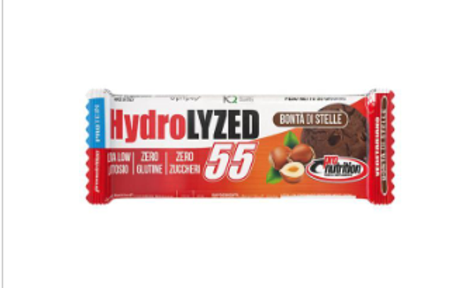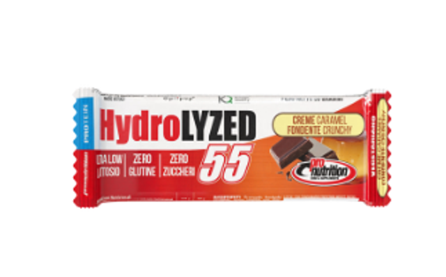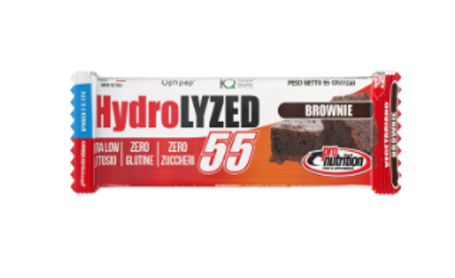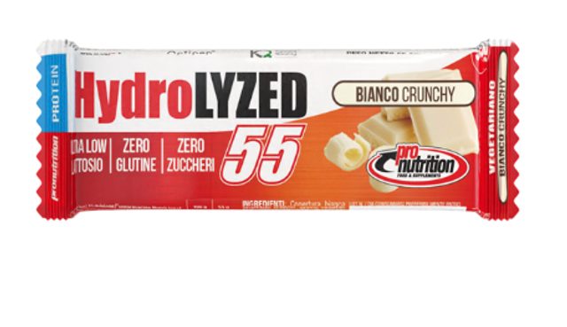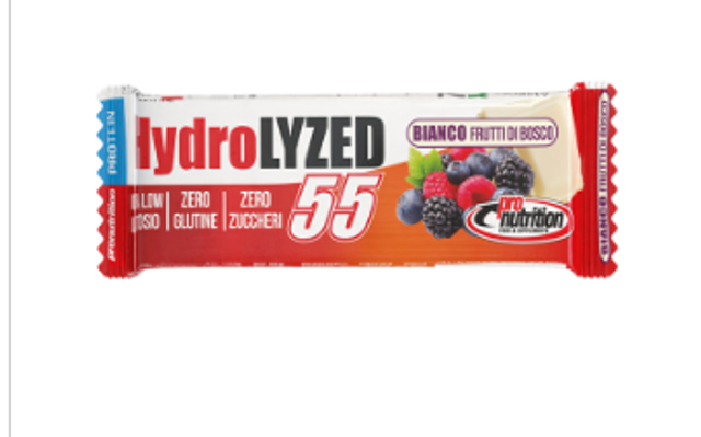 Hydrolized 55gr Protein BaR facilmente digeribile. Con proteine idrolizzate Optipep® e L-Glutammina Kyowa Quality® . Con un elevato apporto di L-Leucina