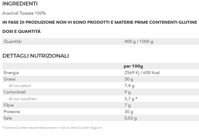 Disponibile nei formati da 400gr o da 1kg nelle varianti Smooth (liscio) o Mega Crunchy ( super croccante con arachidi a pezzi)