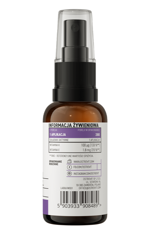 K2 MK-7 spray è un integratore alimentare di alta qualità che contiene la forma meglio assorbita di vitamina K2 e vitamina E. Si tratta di un preparato della linea d'élite OstroVit Pharma, disponibile in una comoda forma spray. Si tratta di un prodotto creato per i consumatori consapevoli che vogliono integrare la loro dieta quotidiana con preziosi composti.