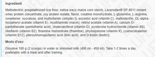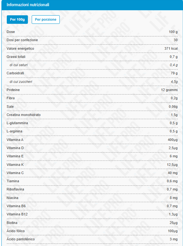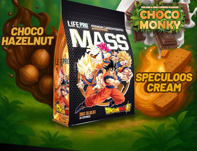 Il nuovo Life Pro Mass Gainer Dragon Ball Super Limited Edition combina una formula ad alte prestazioni e ad alto contenuto calorico con un design esclusivo ispirato all'universo di Goku. Questa edizione limitata non si distingue solo per la sua immagine iconica, ma anche per offrire un'efficace combinazione di carboidrati, proteine, aminoacidi e vitamine, rivolta a coloro che cercano di aumentare di peso e aumentare la propria massa muscolare in modo efficiente e sostenuto.