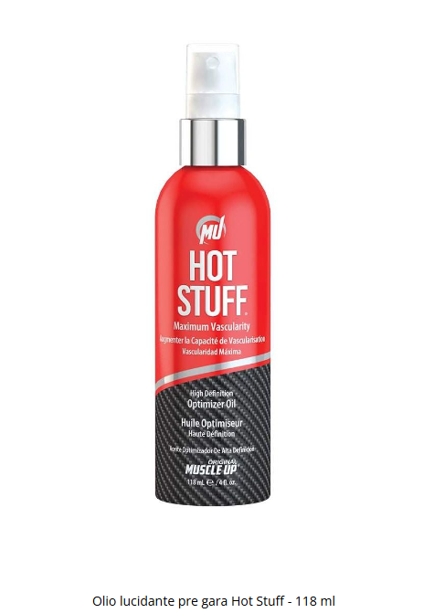 Hot Stuff® High Definition Optimizer Oil è formulato con tamponi naturali e Vasculex, una combinazione esclusiva che aiuta a favorire la microcircolazione e la stimolazione nei livelli superiori della pelle. Sentirai un calore profondo e riscaldante che aiuta a mantenere caldi i tuoi muscoli mentre ti alleni dietro le quinte. Eccezionali oli naturali lasciano la tua pelle con la perfetta lucentezza per la competizione.