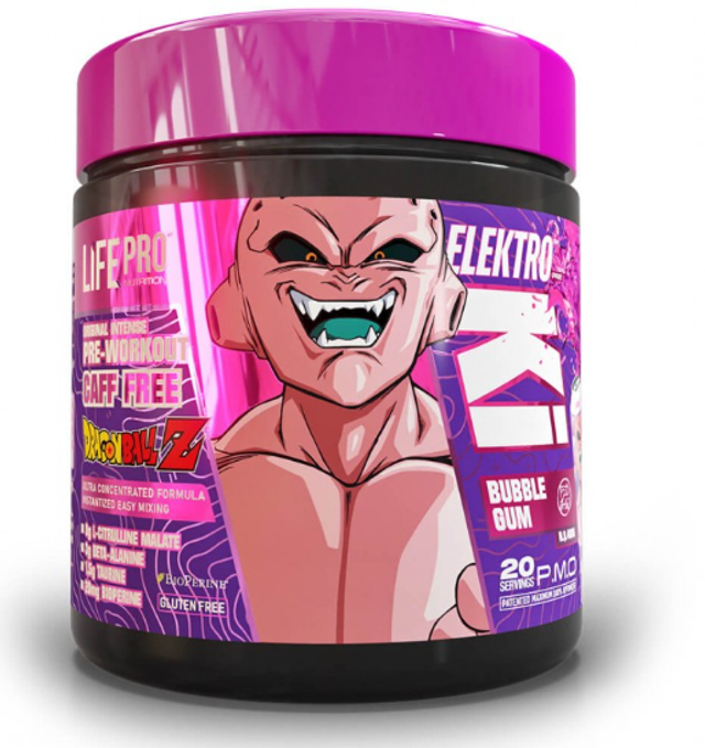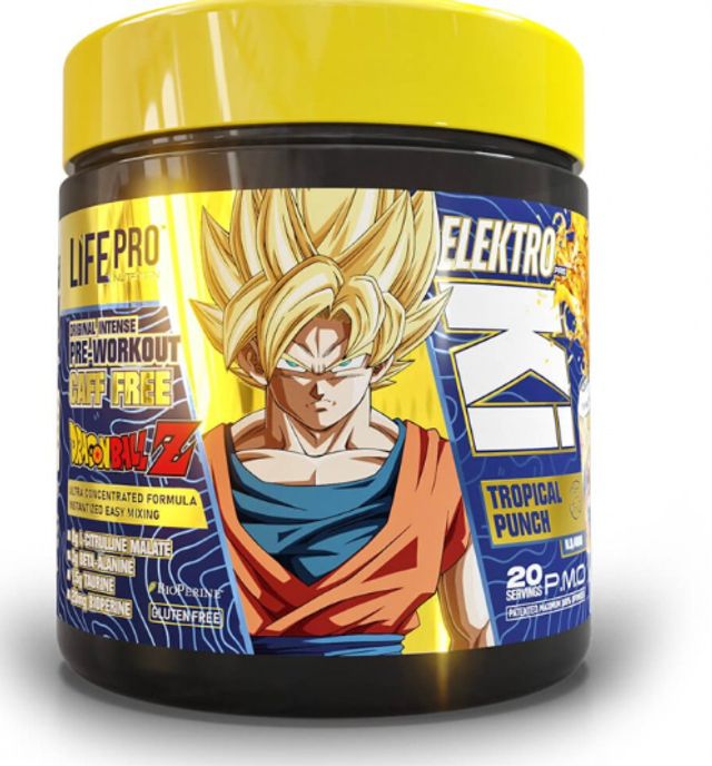 Life Pro Elektro Ki Caffeine Free Dragon Ball Z è un pre-allenamento senza caffeina che fornisce una spinta sostenuta di energia, concentrazione e resistenza senza l'uso di stimolanti. Ideale per gli allenamenti serali, per le persone sensibili alla caffeina o per chi semplicemente cerca una formula più delicata, questa edizione limitata combina ingredienti di alta qualità con un design esclusivo ispirato a Dragon Ball Z.