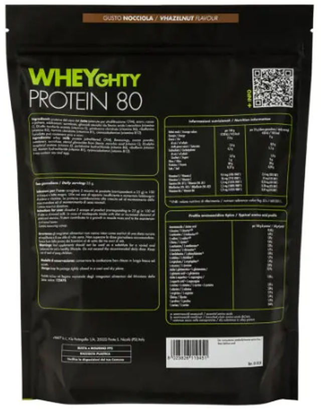 Wheyghty Protein 80 è formulato con proteine concentrate del siero del latte di alta qualità, caratterizzate da una rapida digeribilità e ottima solubilità. Queste proteine favoriscono un aumento rapido degli aminoacidi nel sangue, ottimizzando la fase anabolica post-allenamento e supportando il recupero muscolare. La composizione bilanciata con vitamine del gruppo B e vitamina C ed E rende questo integratore ideale per chi cerca un apporto proteico che favorisca la crescita e il mantenimento della massa muscolare.