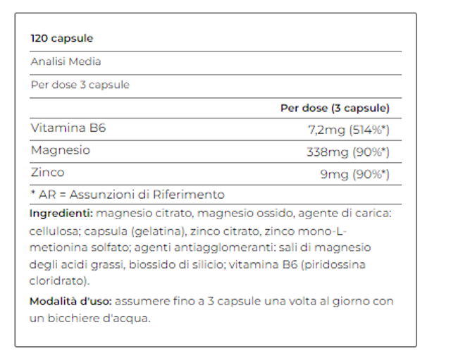 Formula avanzata con zinco, magnesio e vitamina B6;