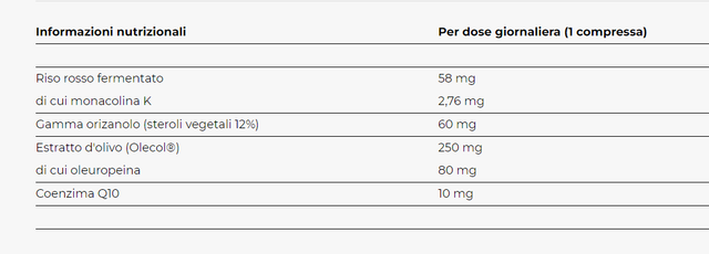 A base di estratto di ulivo Olecol®, riso rosso fermentato, gamma orizanolo e coenzima Q10;