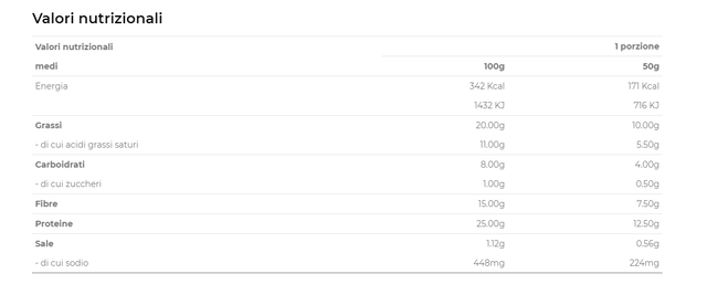 INGREDIENTI: proteine del GRANO, proteine d'AVENA, proteine di riso, fibra di acacia, fibra di FRUMENTO, BURRO, olio d'oliva, emulsionanti: lecitina di girasole, e471, sale, lievito naturale, conservanti: potassio sorbato, edulcoranti: sodio ciclamato, aroma di vaniglia.